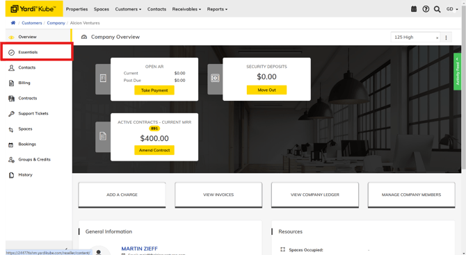 Navigate to the Company record, open the company "Detailed View", select "Essentials" on the left-hand menu.