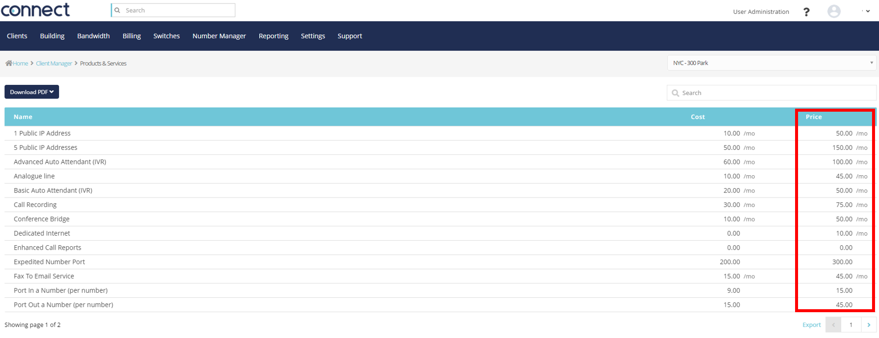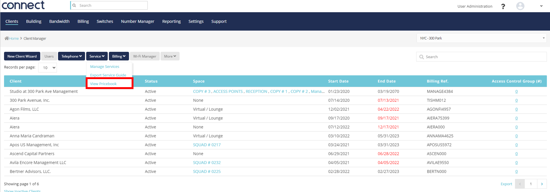 Step 2: Under the "Services" tab, select "View Pricebook".