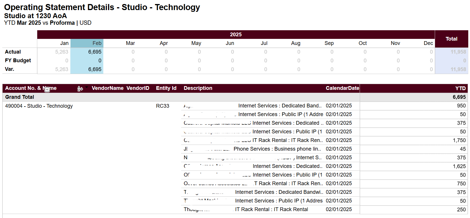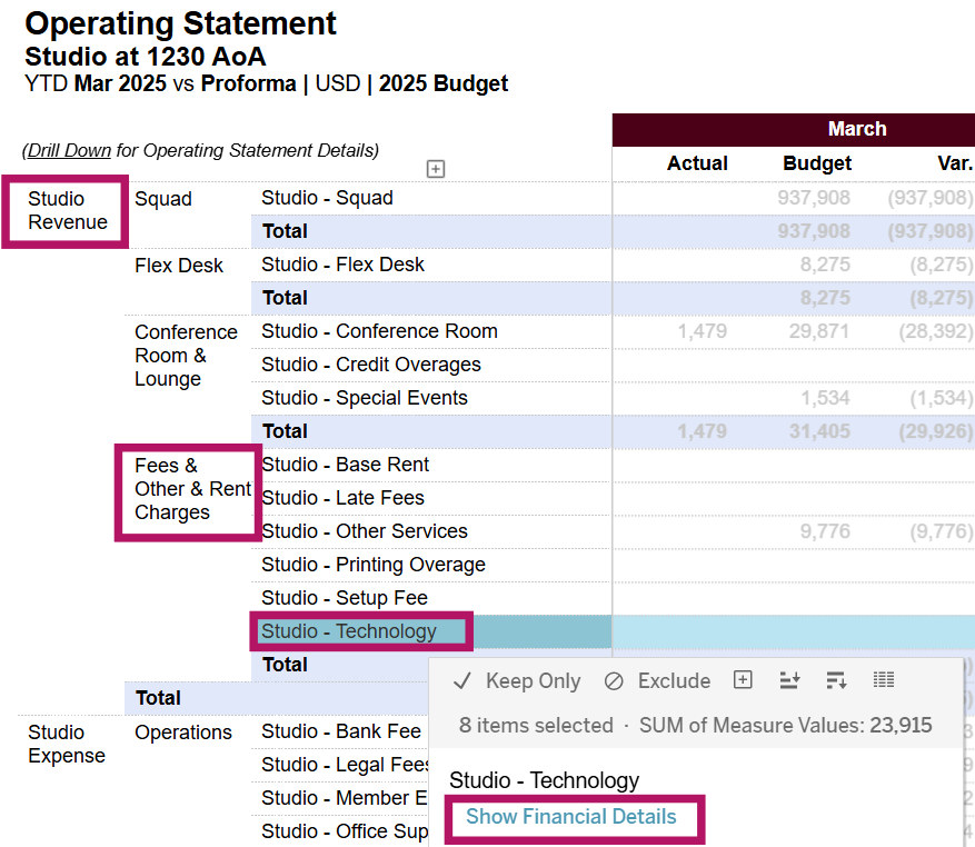 Step 4 - Compare to the Operating Statement -- Studio Revenue -- Fees & Other Rent Charges - Studio Technology