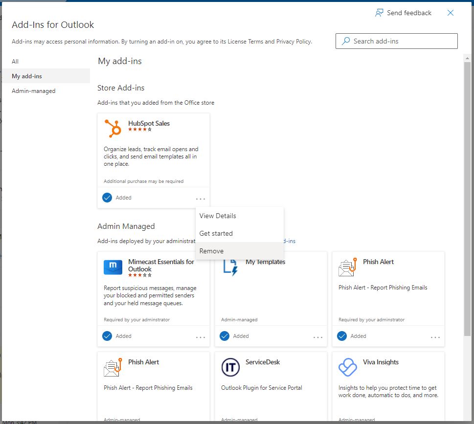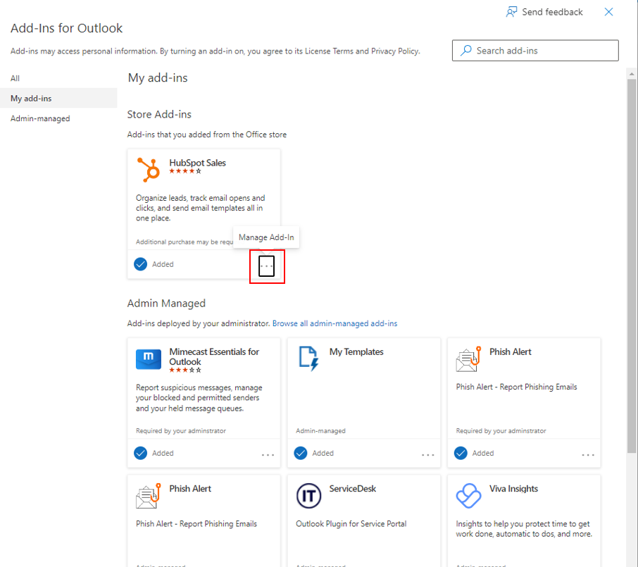 Step 6: Click the three dots next to the Add-in you want to remove: