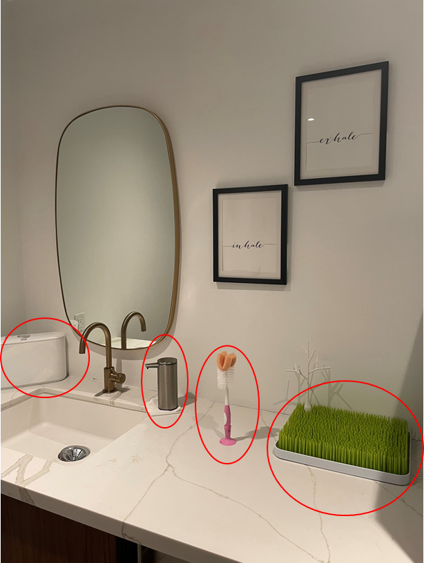 Step 3: Assemble materials on the counter. Materials needed: Hand Soap, Paper Towels, Bottle Cleaning Tools, Bottle Drying Pad/Rack.