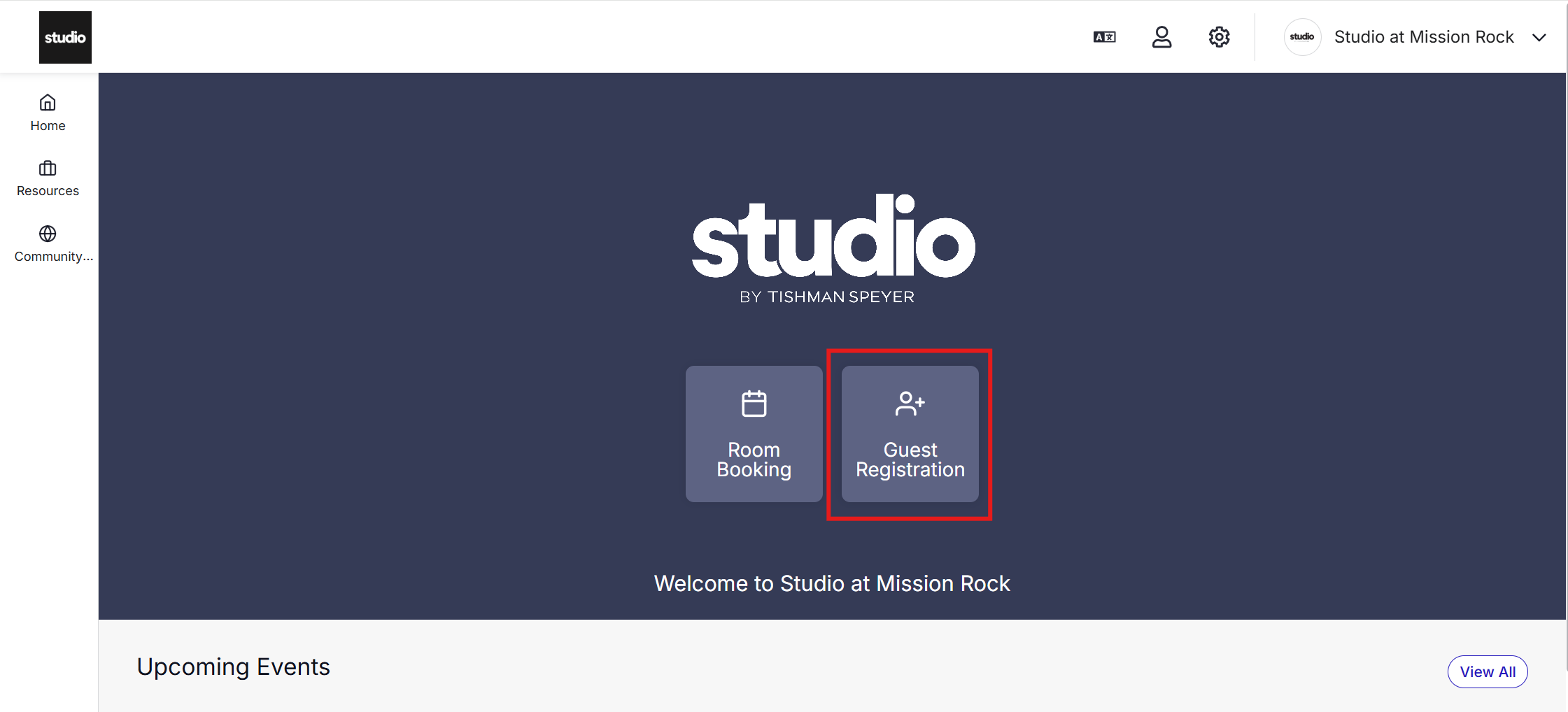 Step 1: Open the Studio App and click on the "Guest Registration Tile"