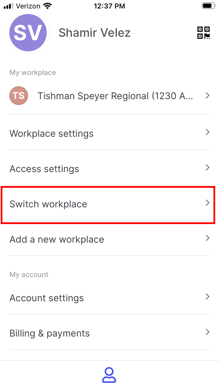 Step 2: Select Switch Workplace. This will open the channel switcher.