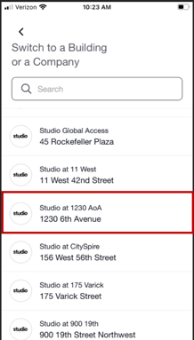 Members of the Your Studio App will be a part of separate channels, which allows for distinction between member companies and Studio Location membership. Studio Location channels are set up with the full suite of features including room booking and guest registration. Company channels are basically just placeholders that help tie a member to the company they work for and are not set up with any interactive features.