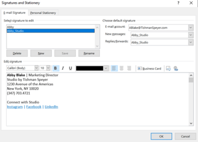 • You have the option to either create a new signature or edit an existing one.  Create a new  signature for yourself and call it “(Your Name)_Studio.