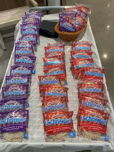 - You can either use a cart and surprise members or set it up in the Main Pantry.