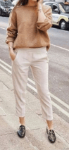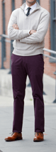 - A non-hooded sweater with chinos