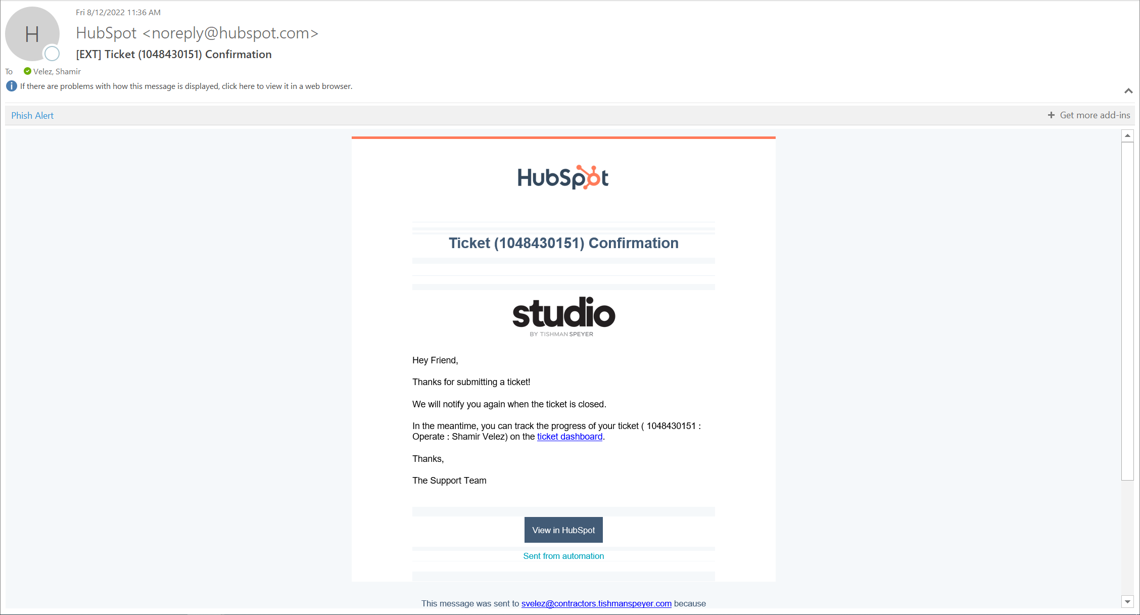 Step 1: Once you have submitted a ticket, you will receive a Ticket Confirmation Email.